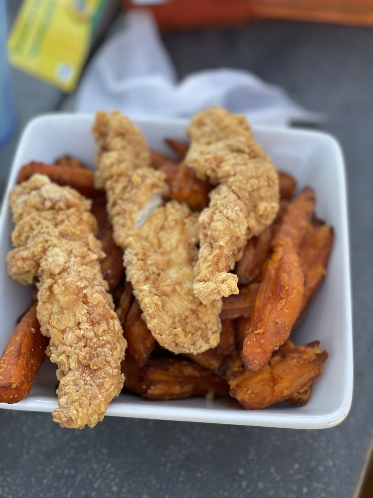 Bates Blonde beer battered cod with choice of housemade potato chips or french fries